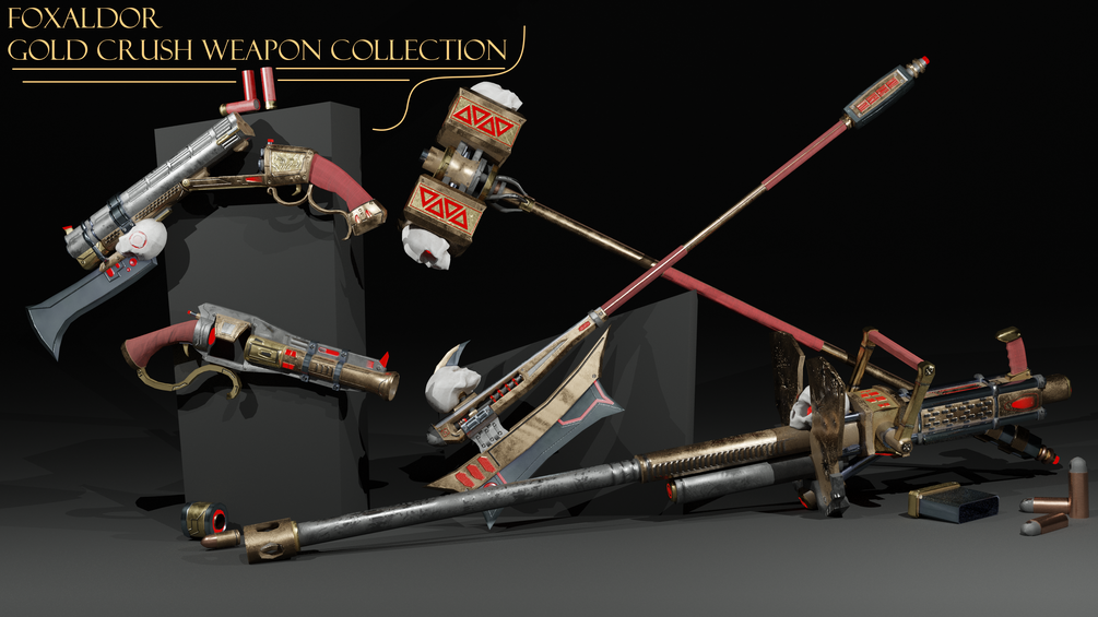 Golden Crush weapon pack contains 5 models of weapons made from scratch by me Foxaldor.