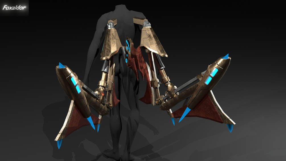 Choose between a black or bronze set of rigged mechanical wings including animations