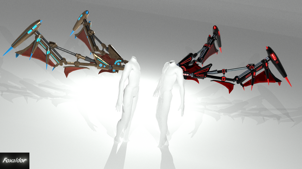 Choose between a black or bronze set of rigged mechanical wings including animations